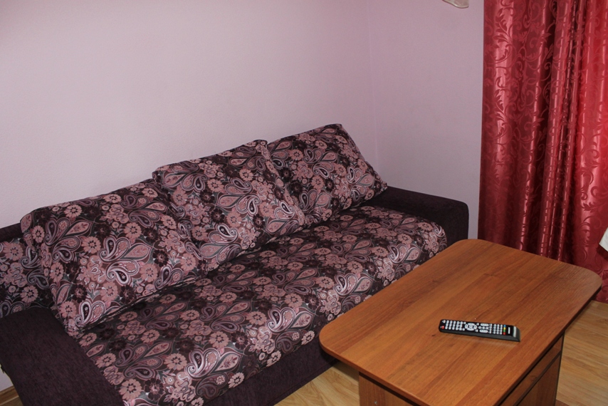 - 1 местный 2 комнатный. В номере: душ, умывальник, туалет, ТВ, холодильник. Возможно 1 доп место (диван)